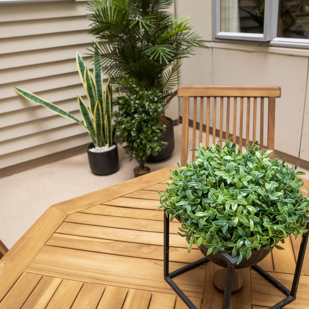 Faux plants are UV treated, making them more durable than their real counterparts. Even in harsh weather like strong wind and heavy rain, they still maintain their flawless appearance.
